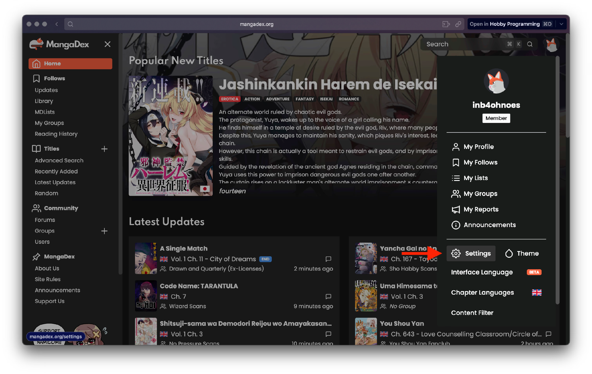 You can keep up with popular titles, recently added titles, your latest following library updates, read download mangas offline, and more! Features will be added over time for parity with the MangaDex website.